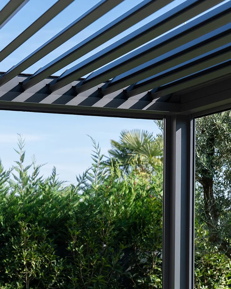הפרגולות הביו-קלומטיות של ג'רבי הן פרגולות חשמליות שמשתלבות בצורה מושלמת בנוף. הסגנון דינאמי – ניתן לעיצוב בעל נוחות אקלימית בלחיצת כפתור – אומנות וטכנולוגיה בעולם אדריכלות הנוף.